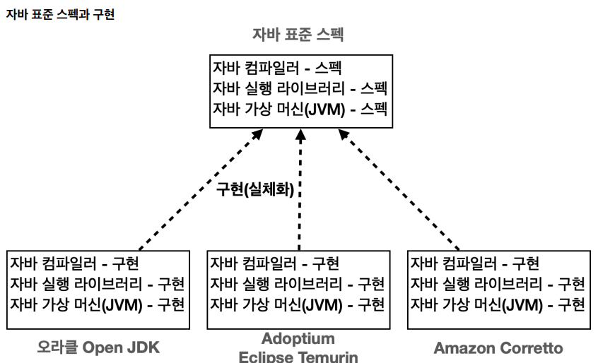 - 표준 스펙을 기반으로 여러 회사에서 실제 작동하는 자바를 만듦